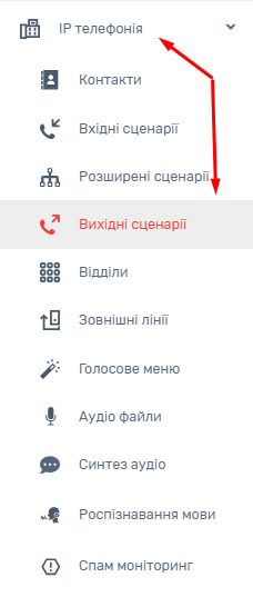 Для налаштування необхідно перейти до розділу IP-телефонія – Вихідні сценарії .
