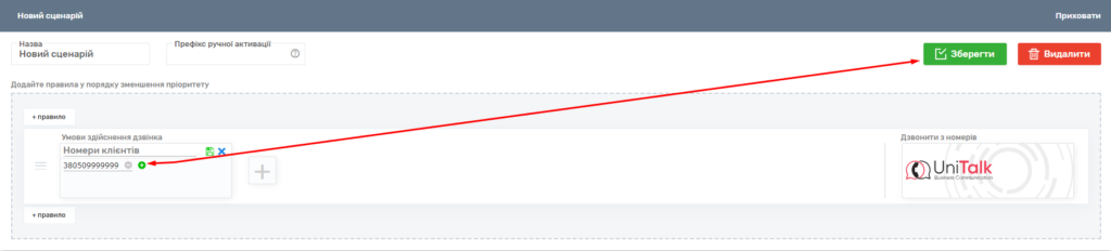 Ви також можете вказати певний номер клієнта. Це означає, що якщо співробітник набере номер 38050-999-99-99, дзвінок буде здійснюватися з номера, вказаного у сценарії.