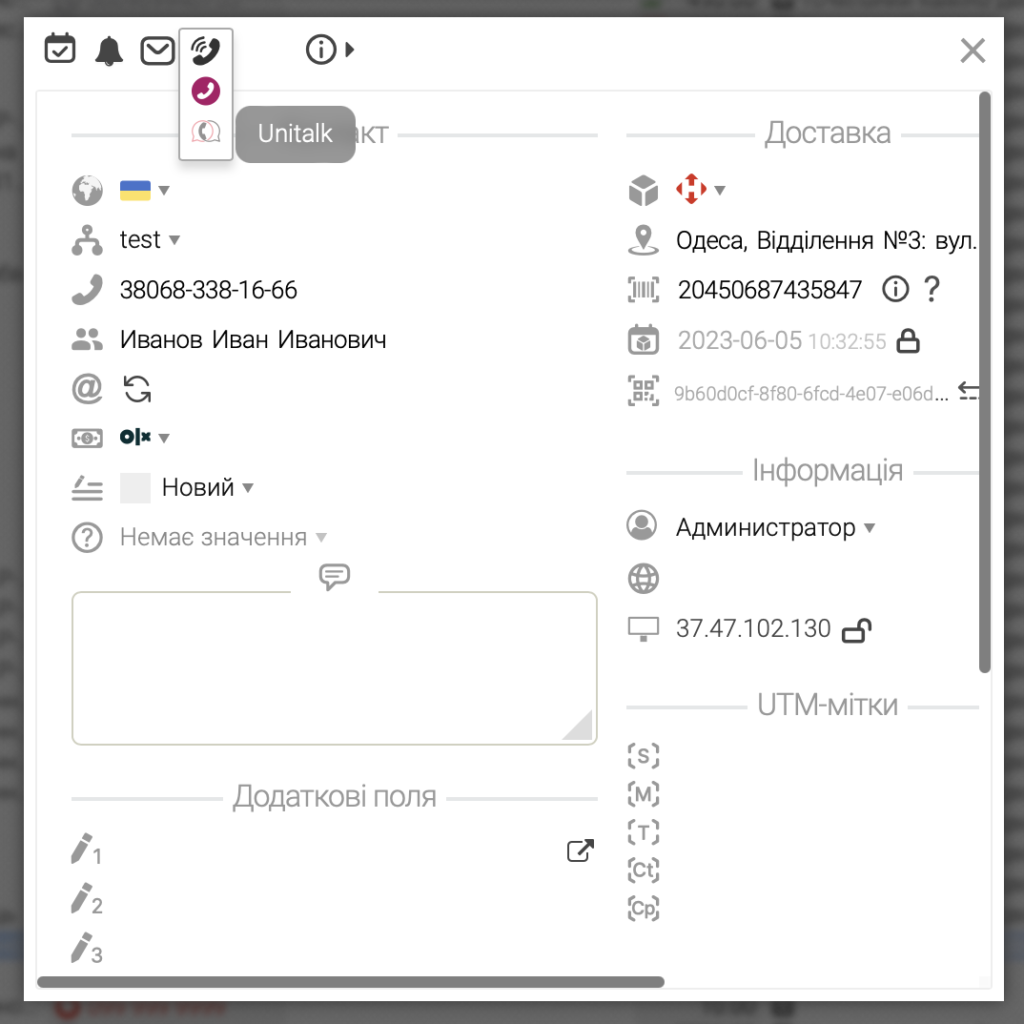 Для виконання дзвінків з СRM потрібно встановити SIP-телефон на ваш ПК. Для більш детальною інформацією про встановлення та налаштування SIP -телефону зверніться до технічно підтримки UniTalk.