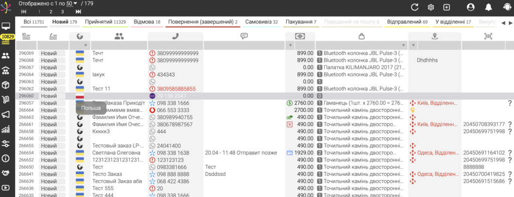 Зміна статусу замовлення – Вибирайте статус CRM.