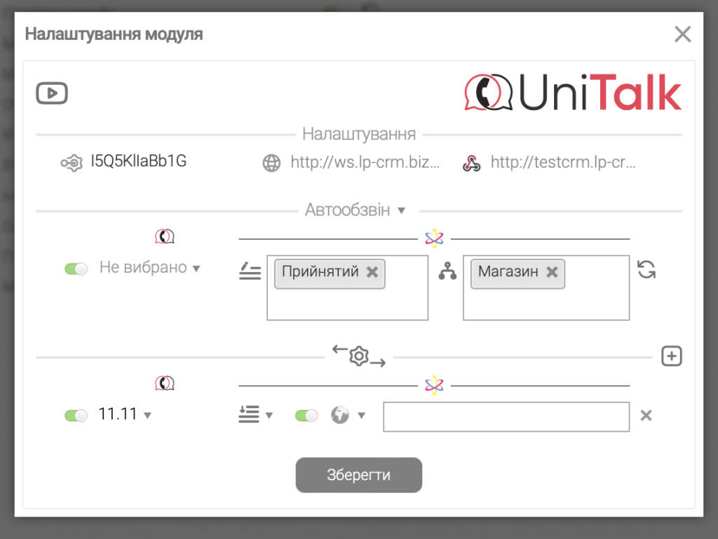 Налаштування автообзвону здійснюються із кабінету UniTalk.