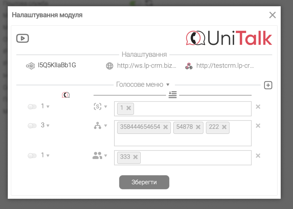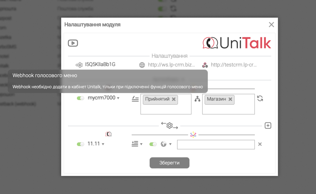 Відкривайте модуль Unitalk – Голосове меню – копіюєте Webhook голосового меню.