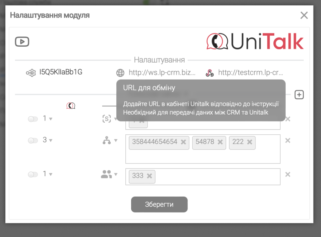 - URL – сюди потрібно ввести скопійовану адресу, надану LP-CRM.