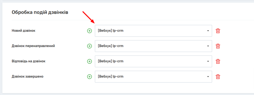 Нижче у блоці Обробка подій дзвінків (Вихідні вебхуки)