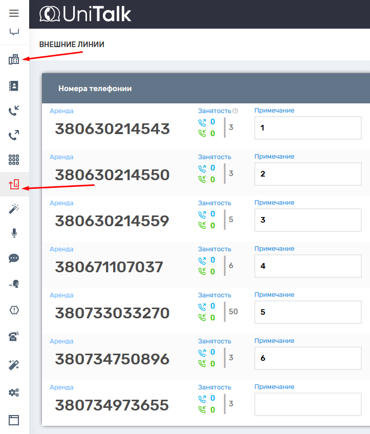 - Дзвонимо на один з номерів Вашого проекту. Всі номери проекту можна переглянути в розділі Зовнішні Лінії