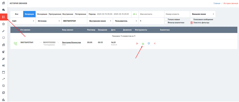 - Заходимо в історію дзвінків UniTalk і завантажуємо запис цього дзвінка на ПК.