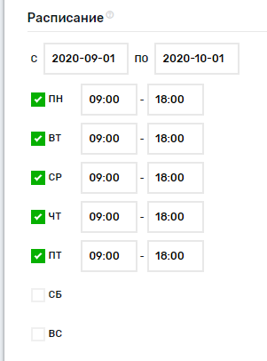 - Графік дзвінків. За замовчуванням обрано стандартний (як для Києва) робочий тиждень.