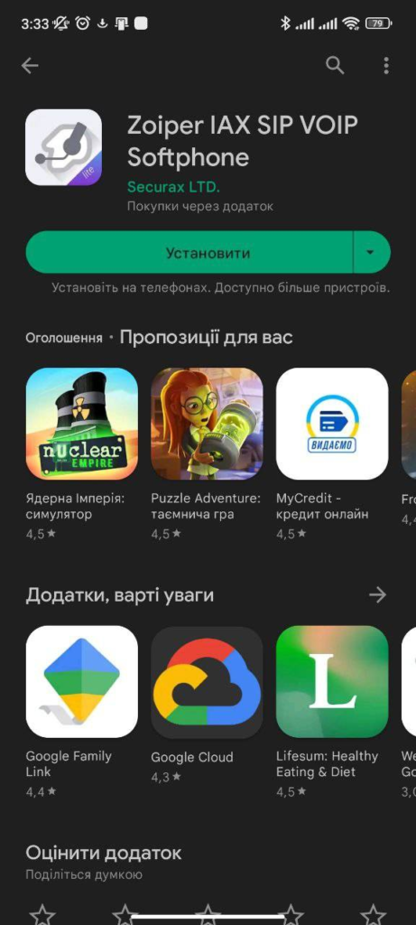 1. У магазині додатків Google Play знайдіть та встановіть додаток Zoiper.