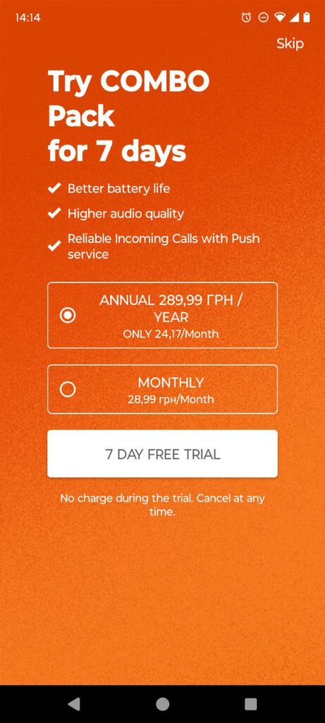 3. Якщо Ви не згодні на платний “Комбінувальний пакет/Combo Pack”, натисніть “Пропустити/Skip”