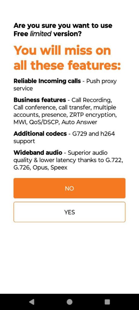 4. Підтвердіть, що згодні використовувати безкоштовну версію Zoiper, натиснувши “Так/Yes”.