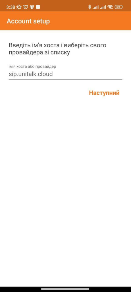 6. Потім введіть ім’я хосту: sip.unitalk.cloud