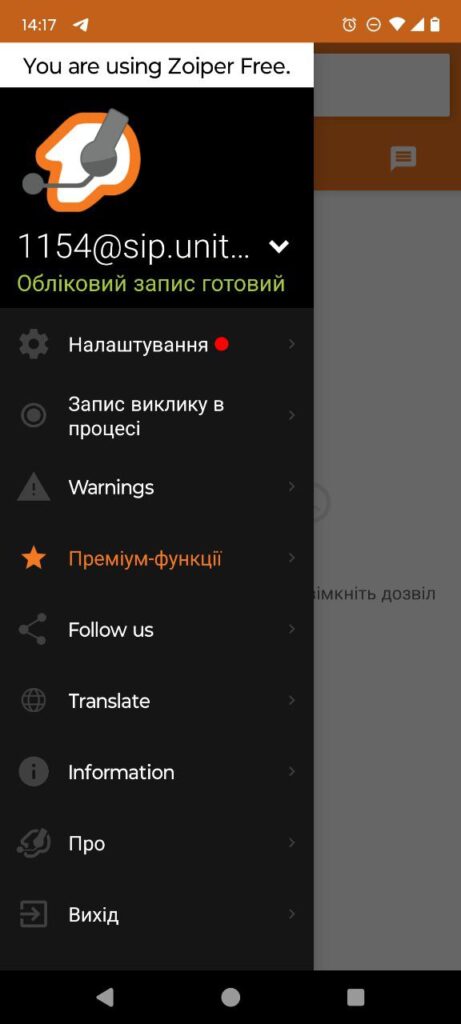 Налаштування програмного телефону Zoiper на Android