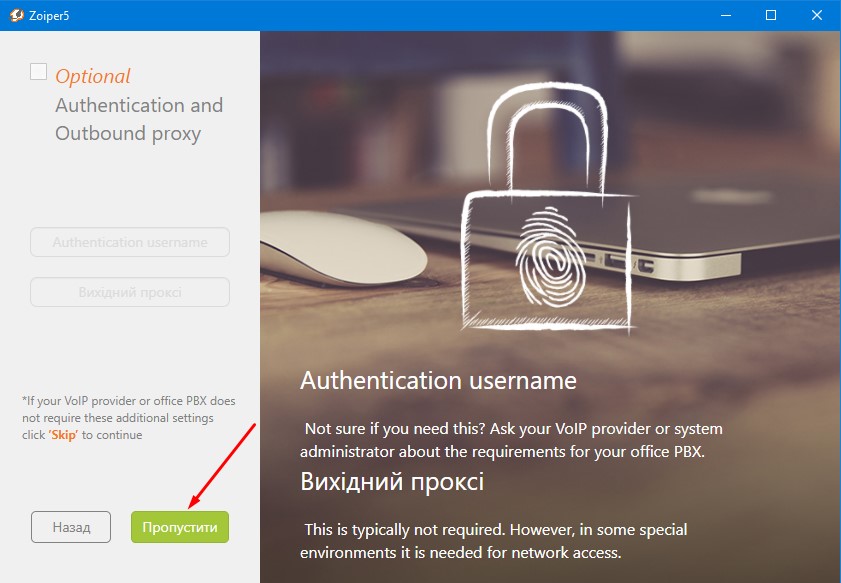 Наступним кроком ZoiPer запропонує вказати SIP проксі або SIP сервер. Залиште сервер за замовчуванням і натисніть кнопку “Далі” (Next).