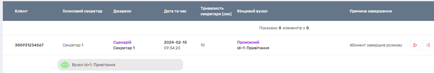 - В історії дзвінків у переадресаціях голосові роботи відображаються як один крок переадресації. Фонові роботи не потрапляють у переадресації, вони вважаються частиною основного робота.