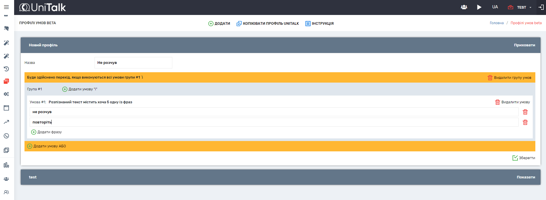 - Профілів умов голосових роботів