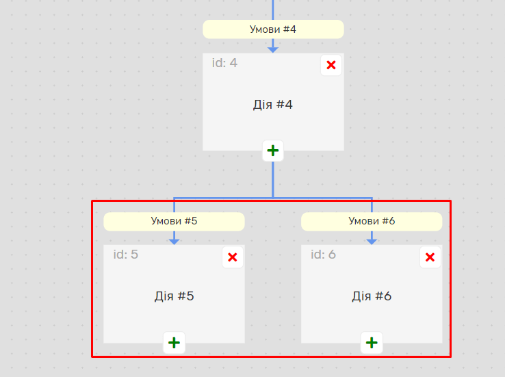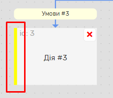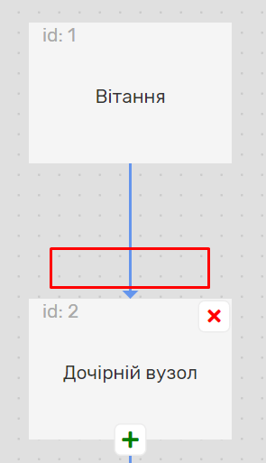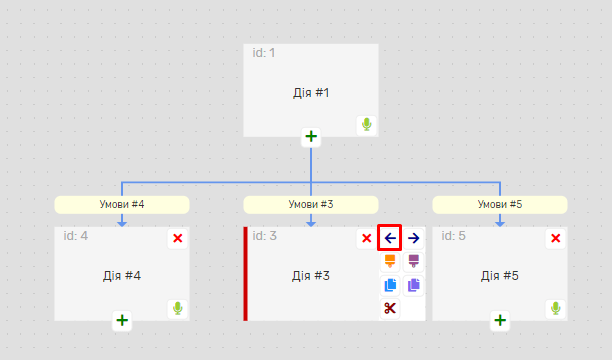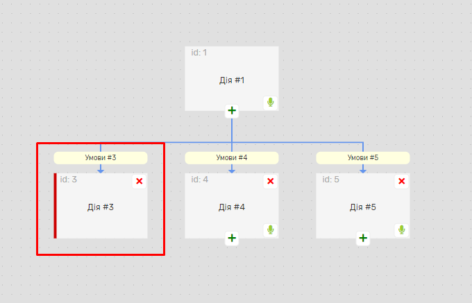 - Може мати тільки один дочірній вузол. При кількох дочірніх вузлах стрілки, які йдуть до них, блиматимуть червоним кольором та налаштування робота зберегти не вийде.