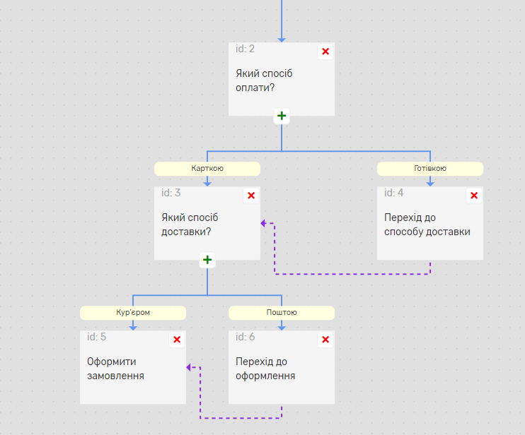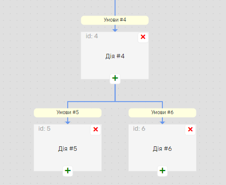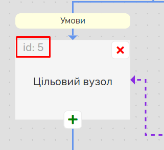 - заборонено перехід на вузол із типом дії “Перейти на інший вузол”