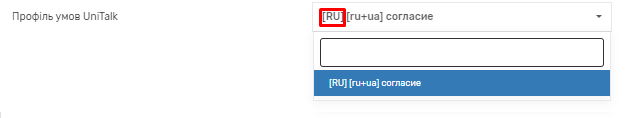 Для зручності до назв профілів UniTalk додані префікси з короткою назвою мови в квадратних дужках — UA, RU, EN тощо. При виборі профілю в поле пошуку можна ввести префікс та побачити список профілів тією мовою, яка вас цікавить.