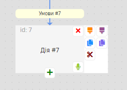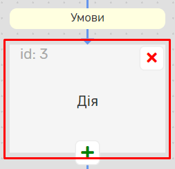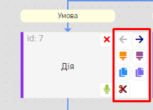 - дія вузла, яка буде виконана під час переходу на вузол. При натисканні на блок дії відкриється панель налаштування дії вузла.