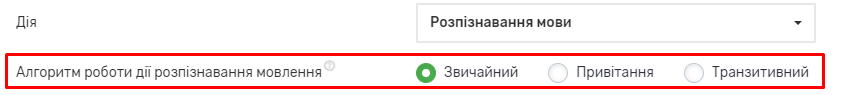 Як працюватиме дія розпізнавання мовлення і які налаштування додатково будуть доступні, залежить від налаштування “Алгоритм роботи дії розпізнавання мови”.