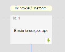 - Після завершення аудіо виконується перехід на дочірній вузол. Те, що говорить абонент, не перевіряється, а якщо навіть говорить, розпізнаний текст не записується в історію роботів.
