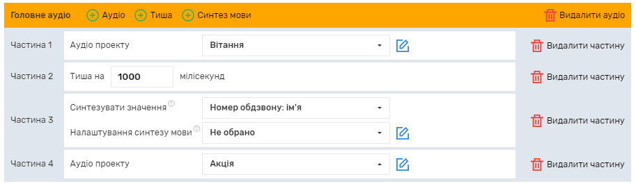 - Якщо фінальний результат не отримано, але абонент не мовчав, буде відтворено аудіо і виконано перехід на дочірній вузол.