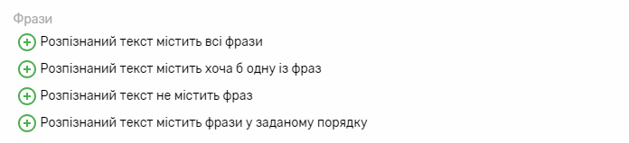 Ви можете вказати, які фрази має чи не має містити розпізнаний текст. Можна вказати будь-яку кількість фраз (кнопка “Додати фразу”).