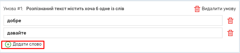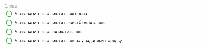 Ви можете вказати, які слова має чи не має містити розпізнаний текст. Можна вказати будь-яку кількість слів (кнопка “Додати слово”).