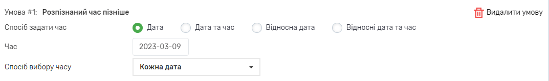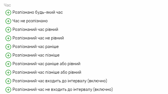Для умов, окрім “Розпізнано будь-який час” та “Час не розпізнано” необхідно вказати наступні налаштування:
