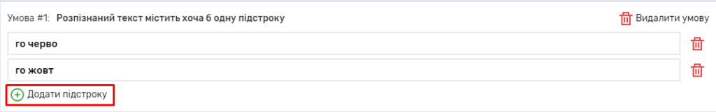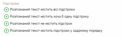 Налаштування підрядків вказують, які підрядки має чи не має містити розпізнаний текст. Можна вказувати будь-яку кількість підрядків.