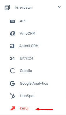 3. Зайдіть в особистий кабінет Keruj CRM, перейдіть у вкладку “Налаштування” — “Додатки”, де відображаються всі можливі інтеграції.