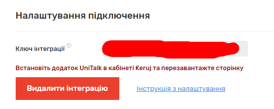 Важливо! Під час оновлення або відключення інтеграції в особистому кабінеті UniTalk її необхідно відключити та знову підключити в особистому кабінеті Keruj CRM. Ключ не оновлюється.