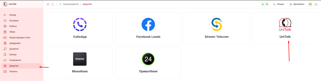 Для налаштування інтеграції IP-телефонії UniTalk з Keruj CRM виконайте наступні кроки.