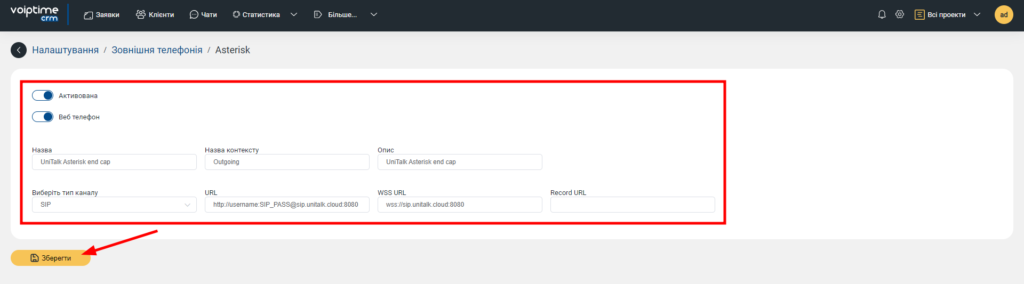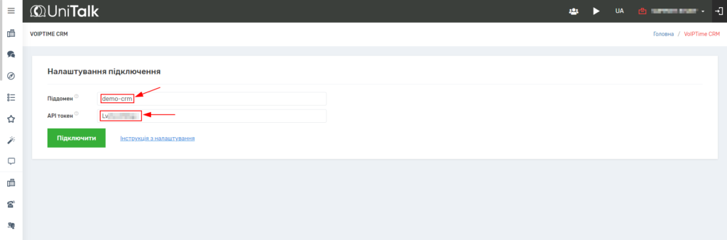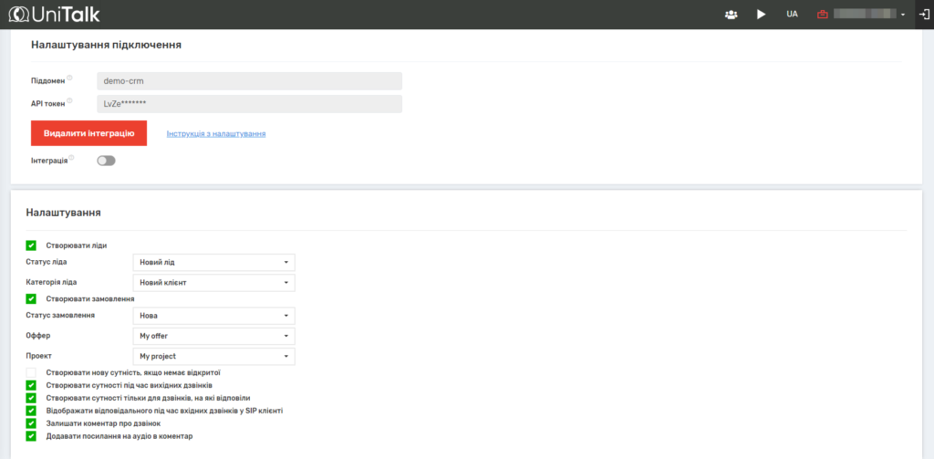 Підключення та налаштування інтеграції IP-телефонії UniTalk з VoIPTime CRM
