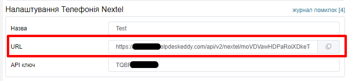 - Необхідно перейти в кабінет користувача UniTalk (Nextel) і в розділі Інтеграція->API скопіювати API ключ, який необхідно вставити у відповідне поле системи HelpDeskEddy. У разі зазначення правильного API ключа, натискаємо кнопку «Синхронізувати та зберегти»: