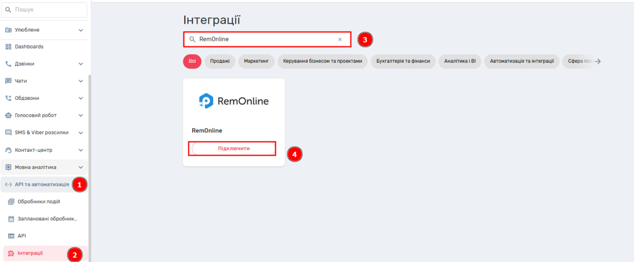 Підключення та налаштування інтеграції з РемОнлайн