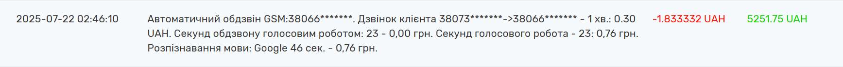 3. Списання коштів відбуваються після здійснення дзвінка, в тій же транзакції, що і списання за дзвінок.