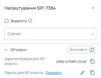 Ви можете знайти ці дані в особистому кабінеті UniTalk, у вкладці “Користувачі”, де необхідно натиснути на кнопку з шестірнею навпроти потрібної лінії щоб відобразити панель з реєстраційними даними цієї лінії.