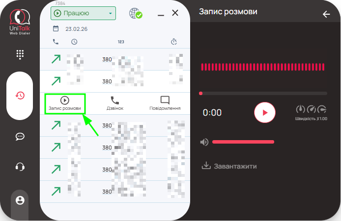 3.7. Історія дзвінків у UniTalk Web Dialer