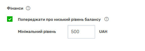 Як налаштувати отримання повідомлень про низький баланс