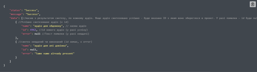 3. Синтез мови в АРІ дзвінках