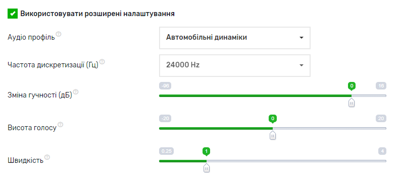 Всі ці налаштування допоможуть Вам максимально якісно і наближено до реального людського голосу синтезувати Ваш текст.