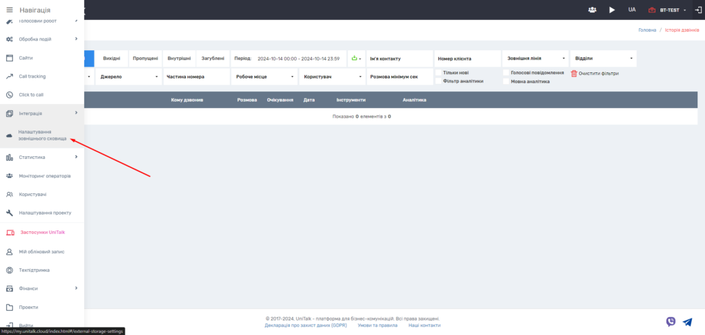 1) В Особистому кабінеті переходимо до розділу «Налаштування зовнішнього сховища»