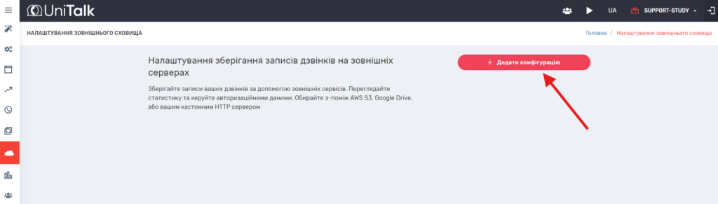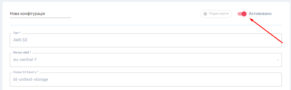 Конфігурацію для інтеграції із зовнішнім сховищем можна створити тільки за наявності відповідної послуги в тарифі проекту. Дана послуга доступна в тарифі Corporation.