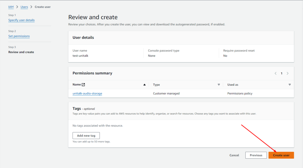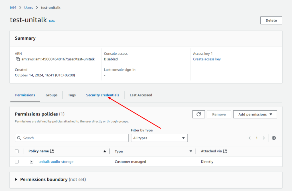 4) Створення користувача для завантаження аудіо із Unitalk в S3