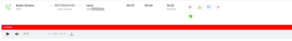 Всі аудіо розмов будуть доступні для прослуховування через особистий кабінет Unitalk. У разі видалення файлу із S3 – він також перестане бути доступним в особистому кабінеті, та при спробі прослухати його – отримаємо помилку “not found”.
