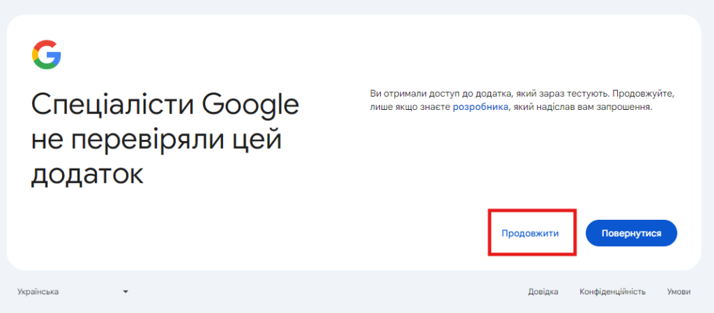 Далі обираємо “Авторизуватись за допомогою Google”: