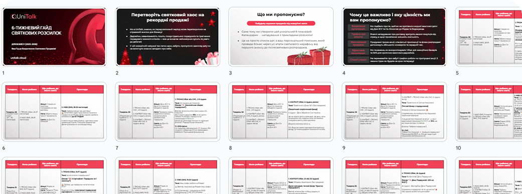 Перетворіть новорічний хаос на системні продажі. Завантажте покроковий календар (з 24.11 по 11.01) із готовими шаблонами повідомлень, щоб не пропустити жодної важливої дати.