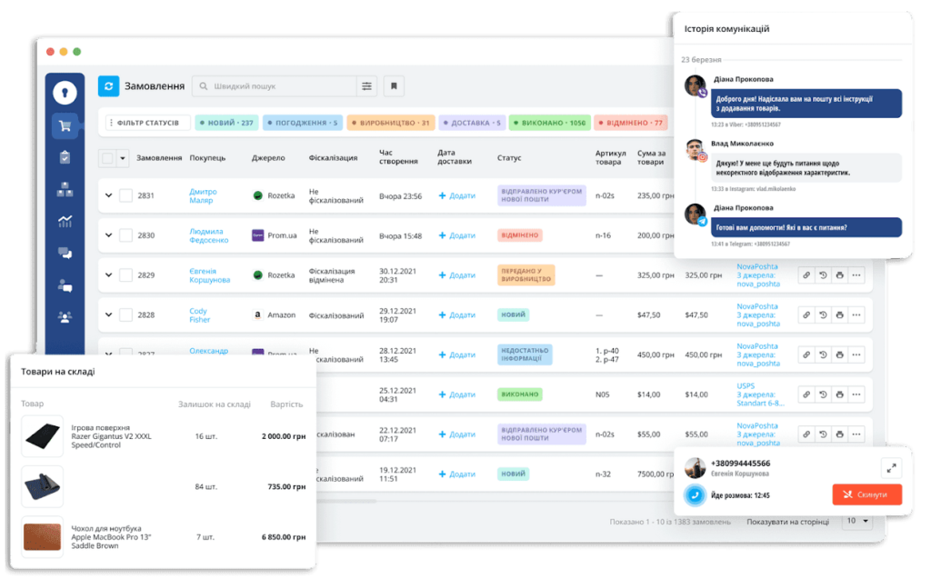 Ще одна українська система, спеціально розроблена для e-commerce. Ця CRM здатна об’єднати в собі всі торгові платформи, управляти продажами, відстежувати замовлення та аналізувати показники продуктивності.
