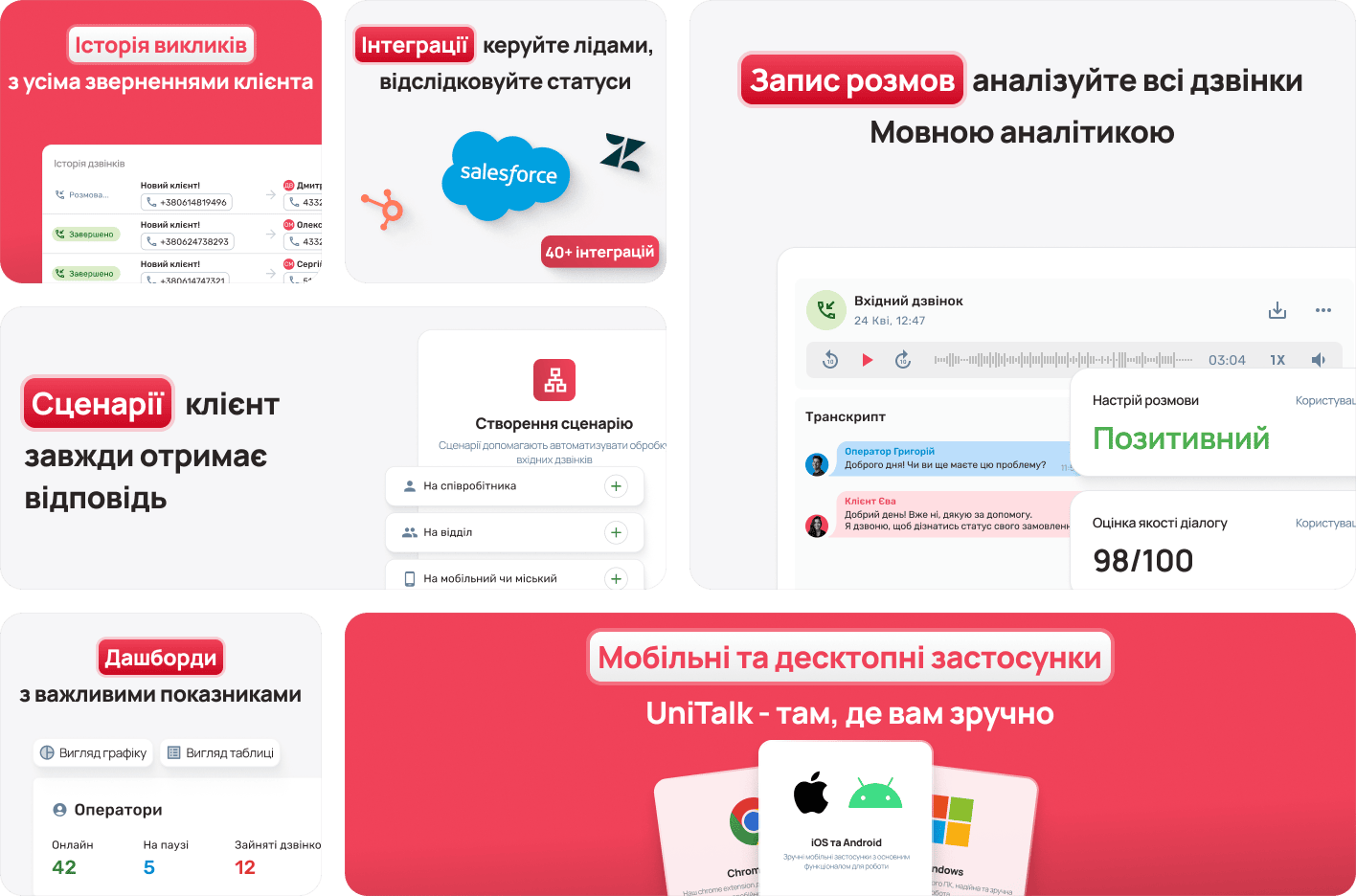 - Запис телефонної розмови — це обов’язкова ключові показники ефективності (KPI) для контролю якості. При роботі іноземними мовами цей інструмент безцінний.